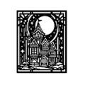 この切り絵図案は、中級者向けの「湖の風景」の切り絵図案です。